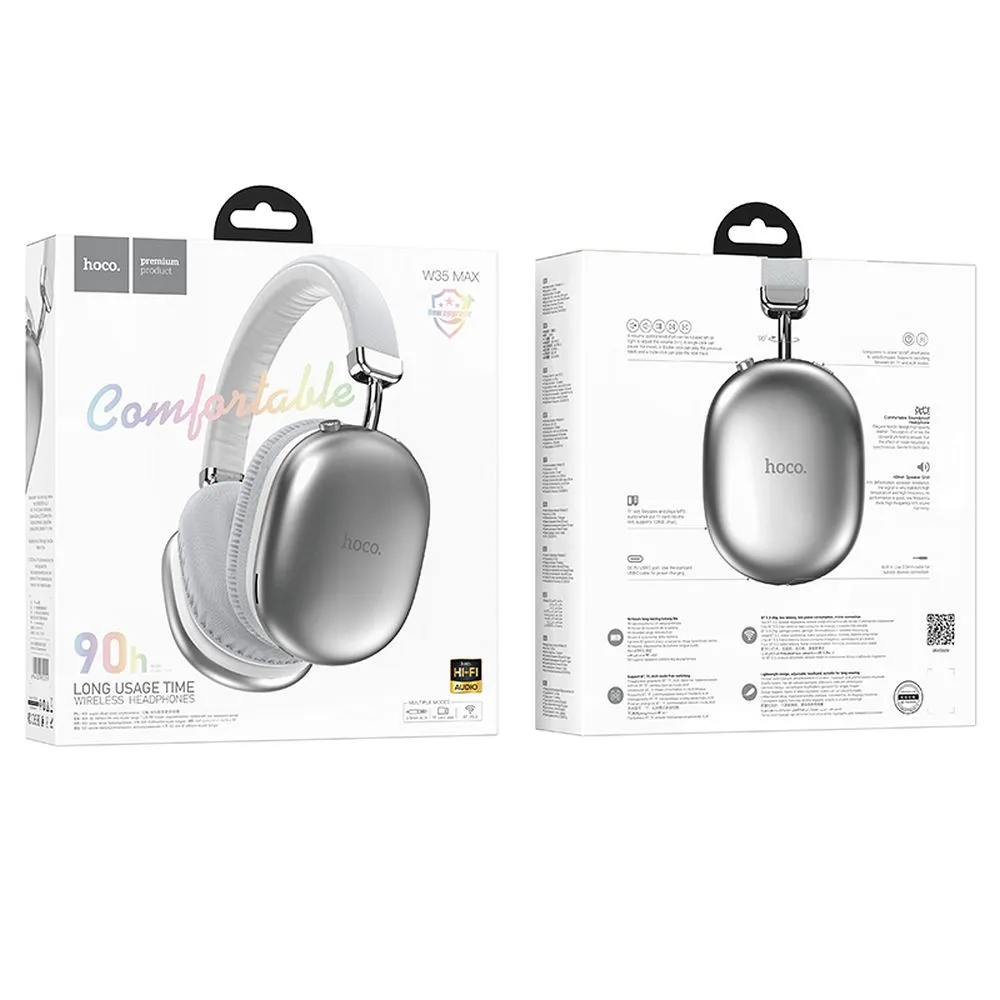 Φορητά ακουστικά Bluetooth – HOCO W35 Max. Παρέχουν υψηλής ποιότητας, καθαρό ήχο με βαθιά μπάσα. Ο πτυσσόμενος σχεδιασμός διευκολύνει τη μεταφορά και την αποθήκευση των ακουστικών σε τσάντα ή σακίδιο πλάτης.