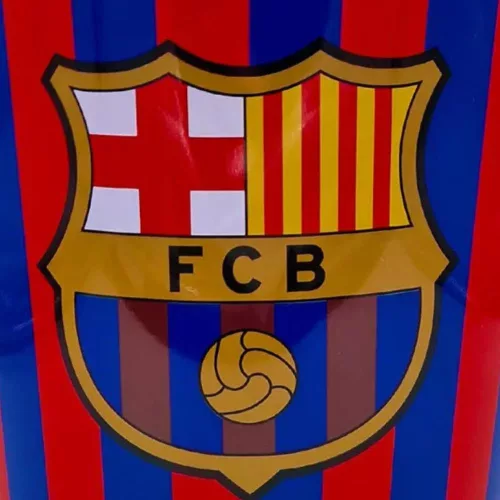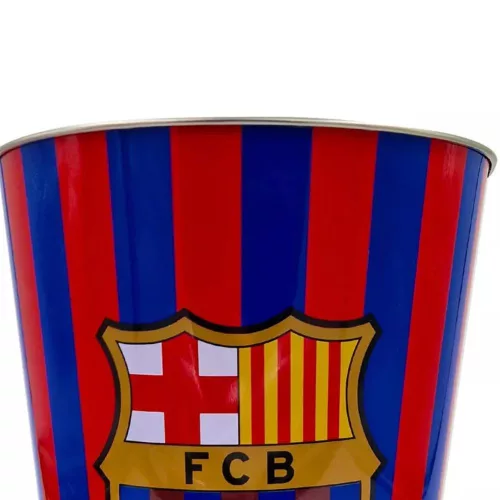 Αυτός ο μεταλλικός κάδος αχρήστων σε μπορντό-μπλε ρίγες με το έμβλημα της Μπαρτσελόνα είναι απαραίτητος για κάθε αληθινό οπαδό της Μπαρτσελόνα.