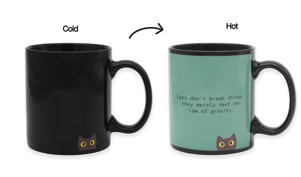 Η κούπα Naughty Cat Heat Sensitive μεταμορφώνεται όταν γεμίζει με ζεστό ρόφημα, αποκαλύπτοντας το παιχνιδιάρικο σχέδιο της γάτας! Ιδανική για καφέ, τσάι ή σοκολάτα, προσφέρει μια διασκεδαστική εμπειρία κάθε φορά που τη χρησιμοποιείς και αποτελεί μοναδική ιδέα για δώρο.