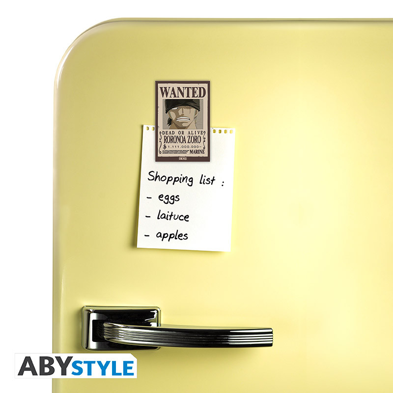 Αφού νίκησε τον τρομερό Βασιλιά, το δεξί χέρι του Αυτοκράτορα Kaido στην Onigashima, ο Zoro έφτασε σε μια εξαιρετική αμοιβή για τη νέα αφίσα καταζητούμενου που έφτιαξαν οι Πεζοναύτες! Ο Zoro, ο μελλοντικός καλύτερος ξιφομάχος στον κόσμο, είναι ο άνθρωπος που θα υπερασπιστεί το ψυγείο σας με αυτόν τον μαγνήτη One Piece από την ABYstyle!