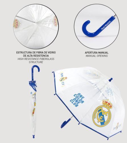Η ομπρέλα Real Madrid Manual Umbrella με διάμετρο 45 cm είναι ιδανική για μικρούς και μεγάλους οπαδούς που θέλουν να προστατεύονται από τη βροχή με στυλ. Με ανθεκτική κατασκευή και το επίσημο λογότυπο της ομάδας, συνδυάζει πρακτικότητα και ποδοσφαιρική υπερηφάνεια.