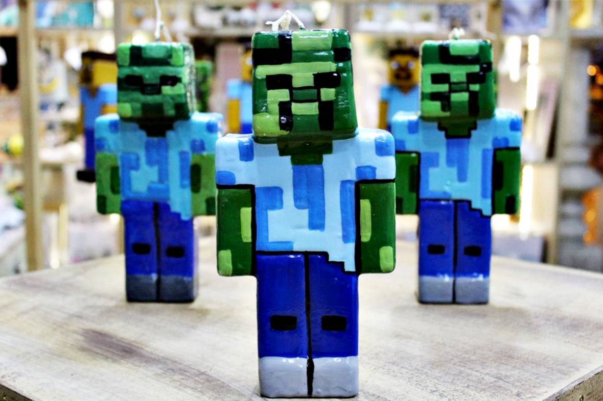 Πασχαλινή λαμπάδα minecraft 3D μπλε-πράσινο 21X10X4