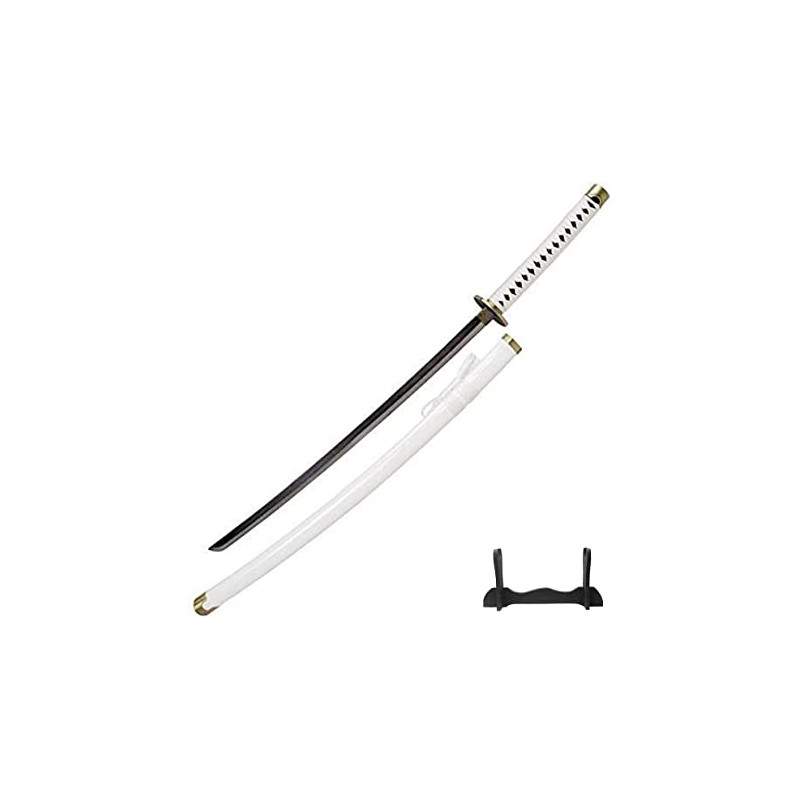 Katana S5021 Shusui Wado Ichimonji από την Zoro από την One Piece, ανεπίσημο αντίγραφο ατσάλινης λάμας 103 cm, μαύρο φινίρισμα με σατινέ κοπή, λαβή με λευκό κορδόνι, με ξύλινη βάση-στήριγμα.