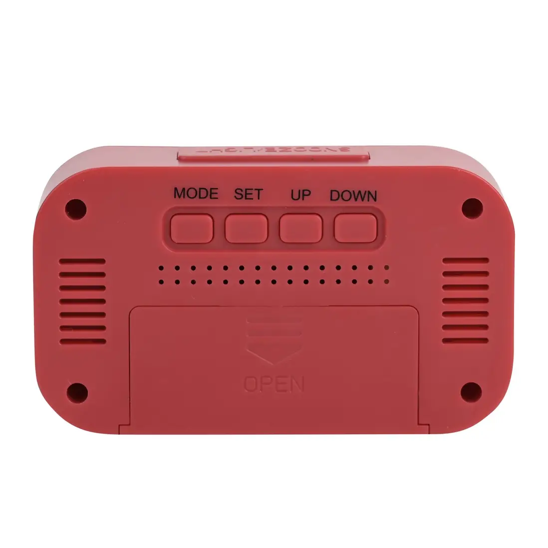 Ένα κόκκινο ψηφιακό ρολόι ταξιδιού LED από τη HOMETIME®.