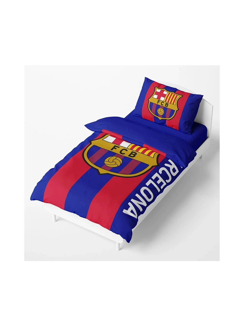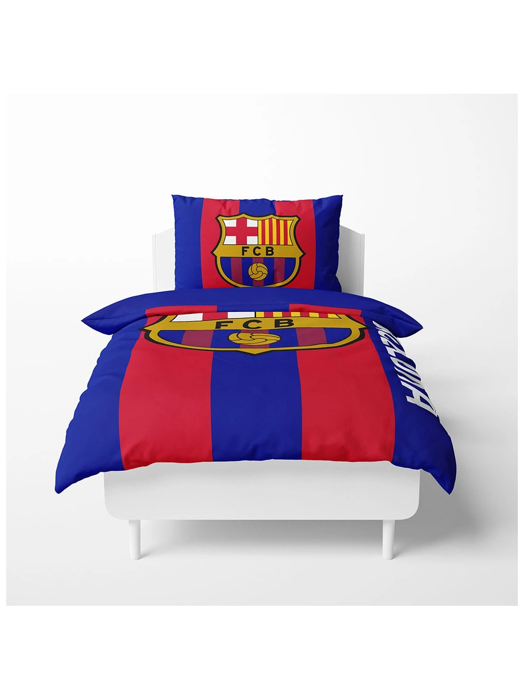 • Σετ κλινοσκεπασμάτων στα χρώματα της FC Barcelona. Κάλυμμα για 1 πάπλωμα και 1 μαξιλαροθήκη. Διαστάσεις: πάπλωμα 135 x 200 εκ. / μαξιλάρι 50 x 75 εκ.