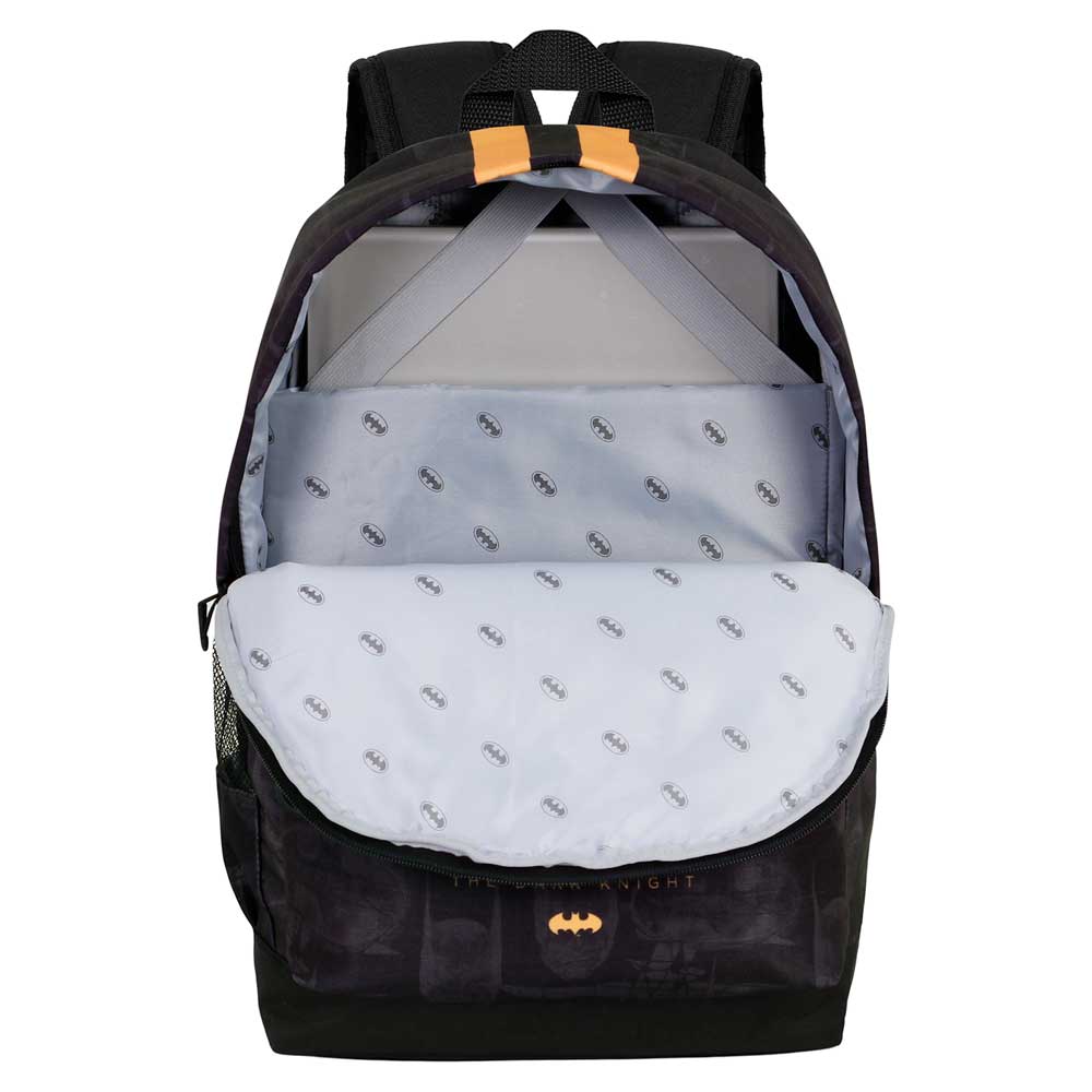 Σακίδιο πλάτης ECO 2.0 Batman Batstyle. Σακίδιο πλάτης με ένα διαμέρισμα, κατασκευασμένο με εξαιρετικά ανθεκτικό ανακυκλωμένο υλικό (RPET). Υδροαπωθητικό εξωτερικό σώμα με μπροστινή τσέπη και πλαϊνή δικτυωτή τσέπη. Εσωτερική επένδυση με επένδυση για ηλεκτρονικές συσκευές. Ενισχυμένοι ιμάντες ώμου και ιμάντας πίσω τροχού.
