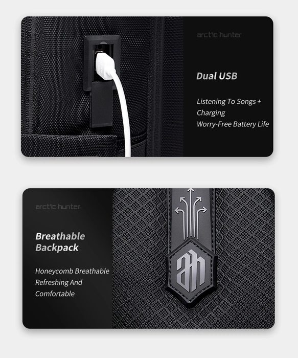 ARCTIC HUNTER τσάντα πλάτης B00490 με θήκη laptop 15.6″, 27L, USB, μαύρη