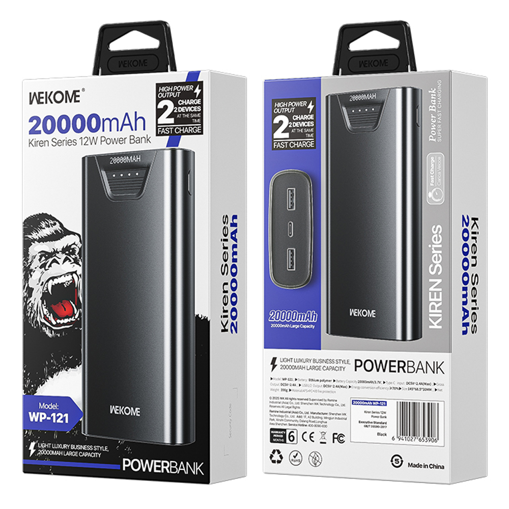 Power Bank 20000mAh 12W WK WP-121 2 Θέσεων Μαύρο -250882